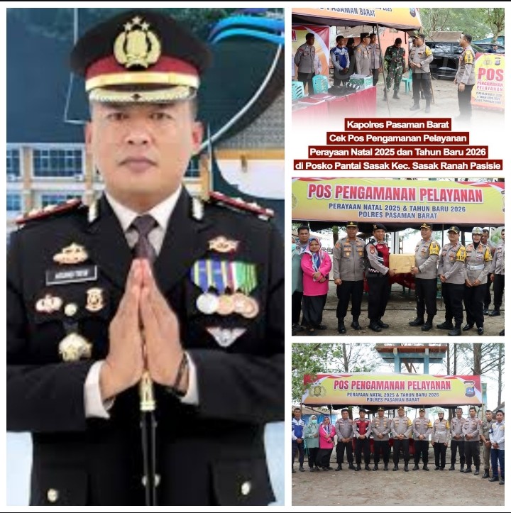 Dengan langkah mantap, AKBP Agung Tribawanto menyapa satu per satu personel yang bertugas di Pos Pengamanan dan Pelayanan Perayaan Natal 2025 dan Tahun Baru 2026 di kawasan Pantai Sasak, Kecamatan Sasak Ranah Pasisie. Tatapannya menyiratkan kepedulian, sementara setiap arahan yang disampaikan terasa lugas dan membumi.