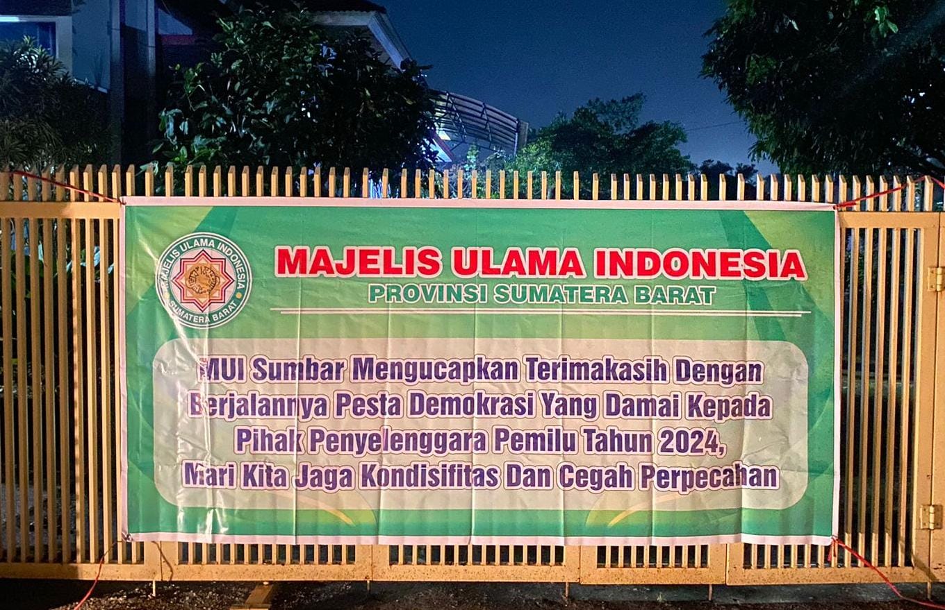 Pasalnya, spanduk itu berisi tentang yang bertuliskan “ MUI Sumatera Barat mengucapkan terima kasih dengan berjalannya pesta demokrasi yang damai kepada pihak penyelenggara pemilu tahun 2024, mari kita jaga kondusifitas dan cegah perpecahan”. Namun, tidak diketahui siapa yang memasang spanduk tersebut.
