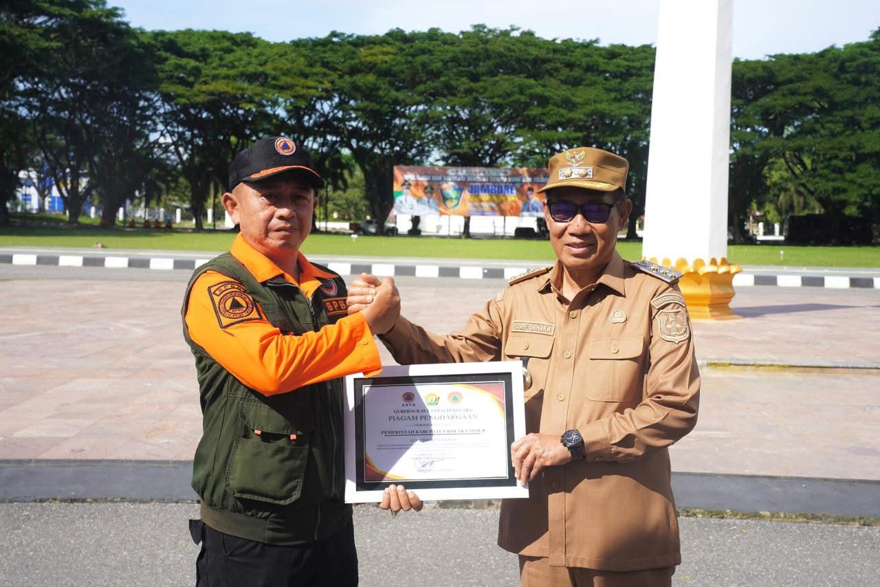 Bupati hadir bersama Kepala BPBD Koltim Dewa Made Ratmawan, S.ST.,M.T beserta jajaran . Kegiatan ini dipimpin langsung oleh Gubernur Sulawesi Tenggara Mayjen TNI (Purn) Andi Sumangerukka, S.E., M.M.