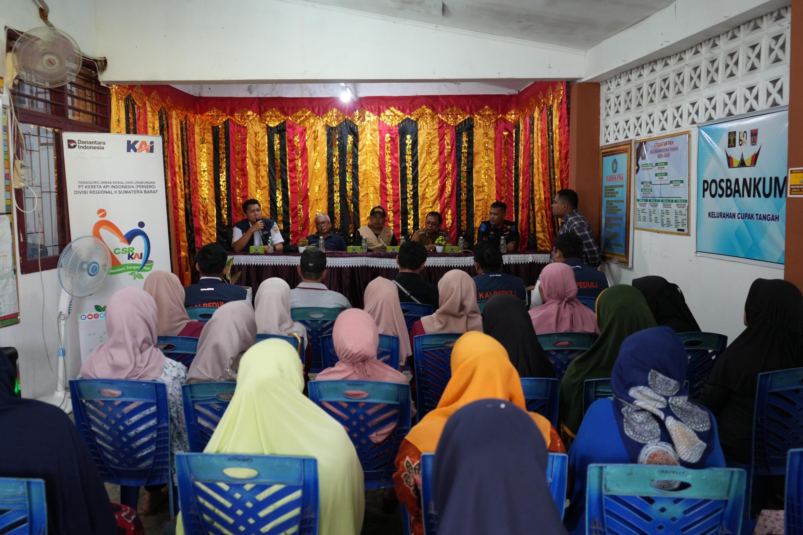 Kegiatan penyaluran bantuan yang dilaksanakan di Kantor Lurah Cupak Tangah tersebut berlangsung dalam suasana hangat dan penuh kebersamaan. Hadir dalam kesempatan itu Manager Keuangan dan SDM KAI Divre II Sumbar sekaligus Anggota Komite TJSL, Aries Tri Mulyo, Sekretaris Camat Pauh Dafid Ferdian, Lurah Kapalo Koto Saidul Bahri, Niniak Mamak Cupak Tangah Samsul Bahri, Tim TJSL KAI Divre II Sumbar, serta masyarakat setempat.