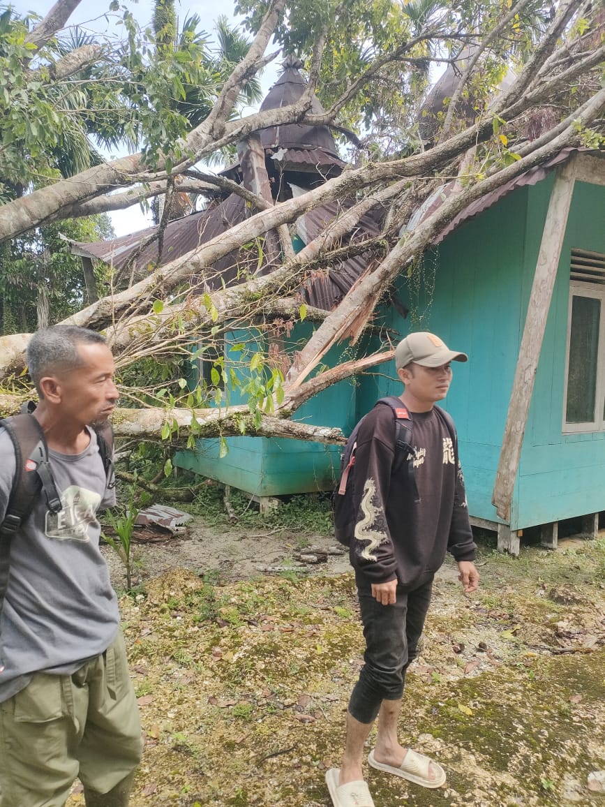 Hasil pantauan langsung di lapangan menunjukkan terdapat dua tempat ibadah yang mengalami dampak cukup serius. Lokasi pertama adalah Mushalla Jibal Nur Pasapuat yang mengalami kerusakan akibat tertimpa kayu saat musibah terjadi.