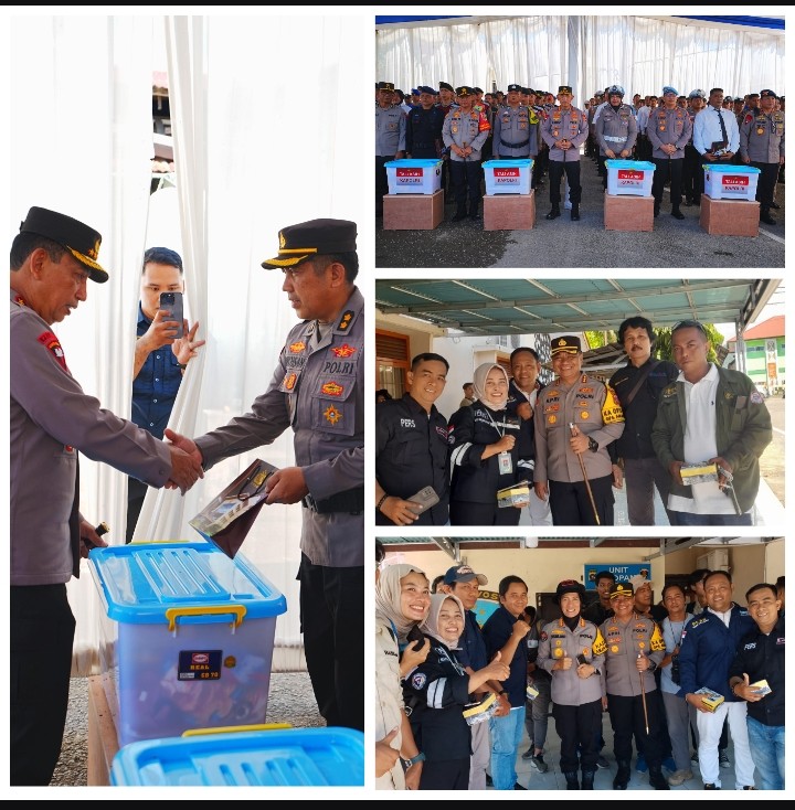 Dalam kesempatan itu, Kapolri menyerahkan secara langsung 170 paket bantuan yang disiapkan khusus untuk memenuhi kebutuhan dasar personel dan keluarganya. Setiap paket berisi beras, mie instan, gula, minyak goreng, sarden, susu, biskuit, sosis, hingga perlengkapan pribadi seperti pakaian dalam, sarung, handuk, selimut, perlengkapan mandi, serta obat-obatan ringan.